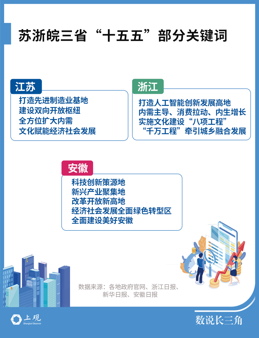 在“十五五”规划的蓝图中,江苏、安徽与浙江三省提出一系列发展目标、重大任务和重大举措,展现出对高质量发展的坚定承诺与深远布局。