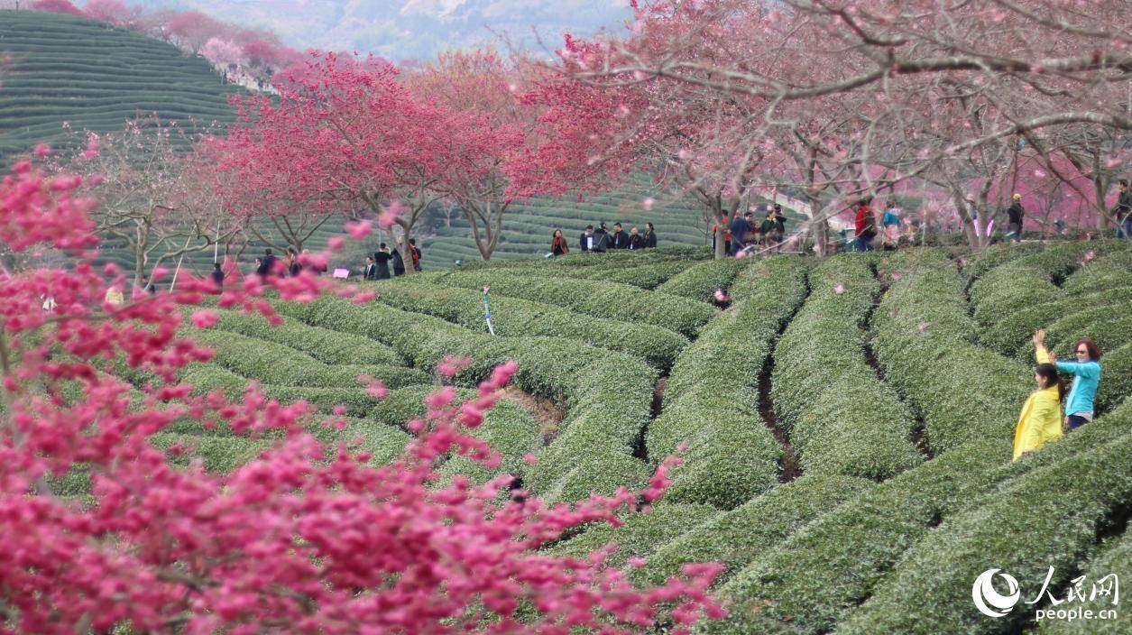 茶园边界,一圈樱花树织就天然隔离林带,它们既能固土保水、驱虫避害,又造就了“十里樱花、千亩茶园”的独特景致。每年春季,粉艳樱花与翠绿茶树相映成画。此外,作为“全国十大赏樱基地”和“中国最美樱花胜地”的台品樱花茶园,已连续举办十四届樱花文化旅游节,累计旅游收入超百亿元,让生态种植与休闲观光实现完美交融。