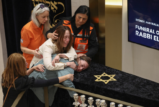 周三上午,随着人们聚在一起、参加为遇难者举办的首个葬礼,邦迪的警力部署也有所加强。在距离袭击发生地仅一公里的犹太教堂,许多人出席了41岁、有五个孩子的Rabbi Eli Schlanger的葬礼。