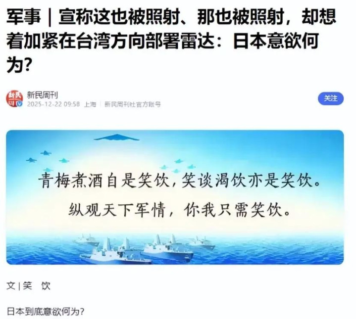 近期,中日两国因“雷达照射事件”及军事行动、舆论风波引发紧张争议。核心在于日方指责中方歼-15舰载机火控雷达“威胁”日本F-15战机,强烈炒作“中国威胁论”天猫配资端,军事、外交冲突不断,民众情绪对立也埋下隐患。