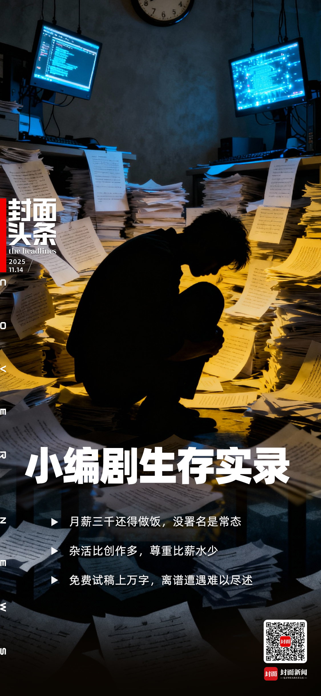 为此,封面新闻记者对话多位小编剧——他们入行3-5年,尚不出名,没有代表作,与古二爆料的处境相似,活多、钱少、没署名,在行业中有委屈、挣扎,也有对讲好一个故事的期盼。
